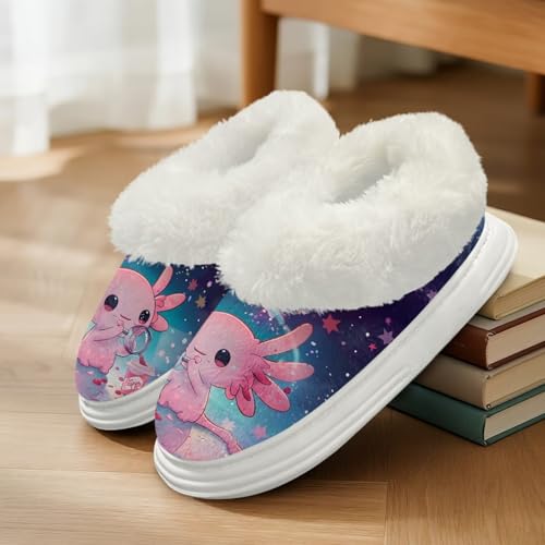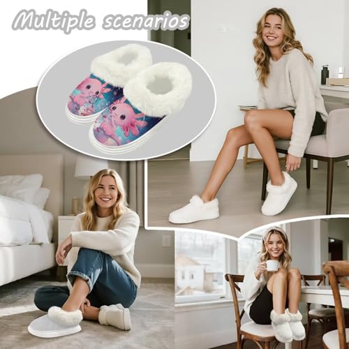 • Warm Winter Slippers: Featuring a soft fluffy plush edge, the house slippers wrap your feet very well, keep your feet warm and comfottable whether in socks or bare feet.