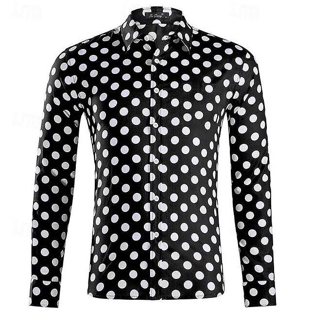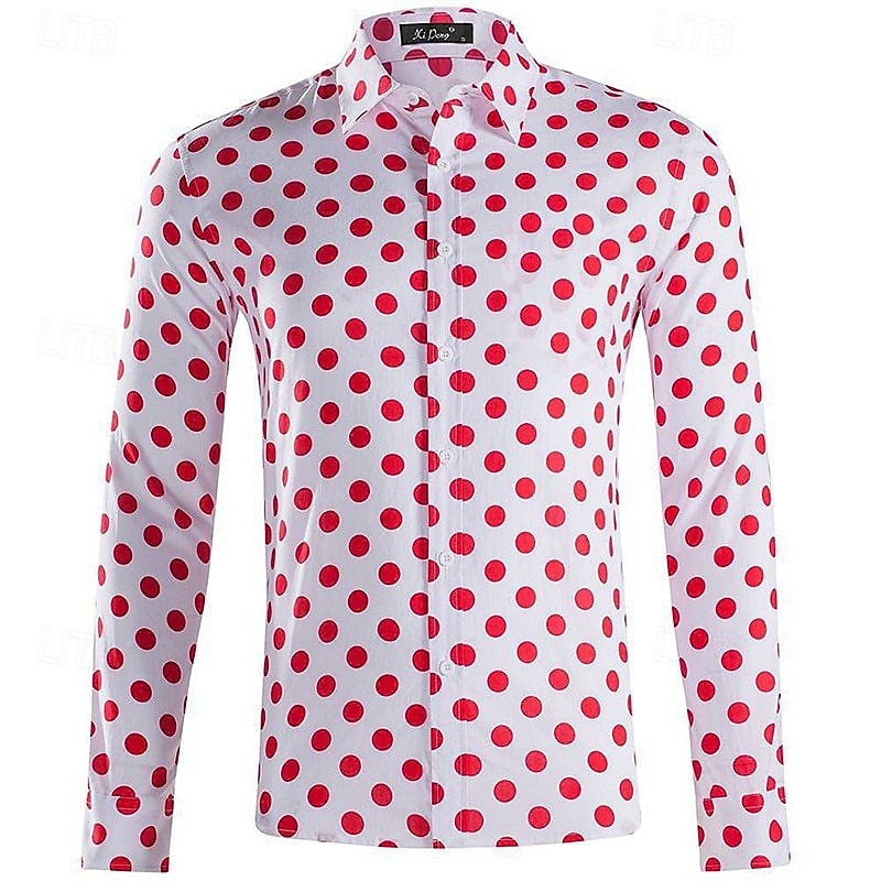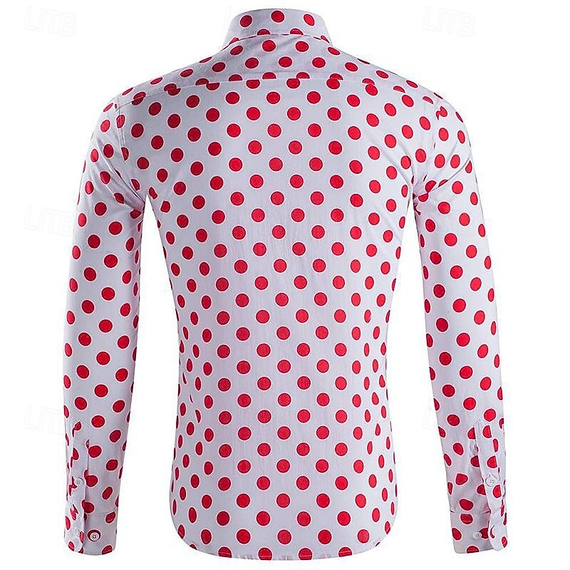 More information about Men's Shirt Summer Shirt Casual Shirt Beach Shirt Button Up Shirt Black White Pink Red Long Sleeve Polka Dot Lapel Vacation Holiday Button-Down Clothing Apparel Polyester Fashion Casual Comfortable