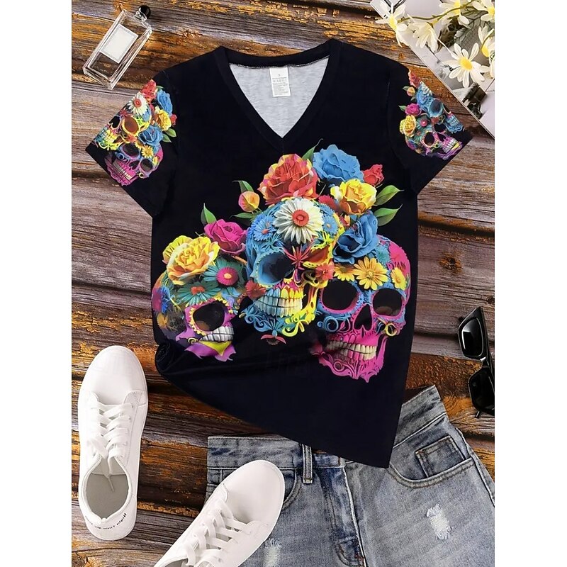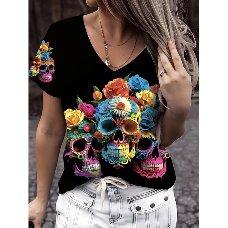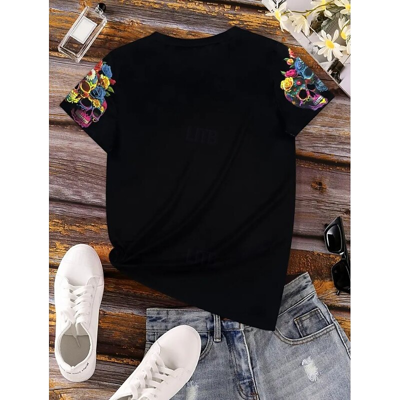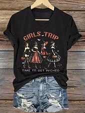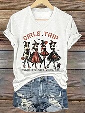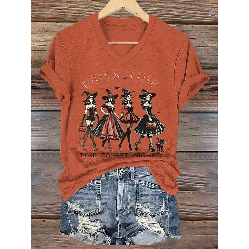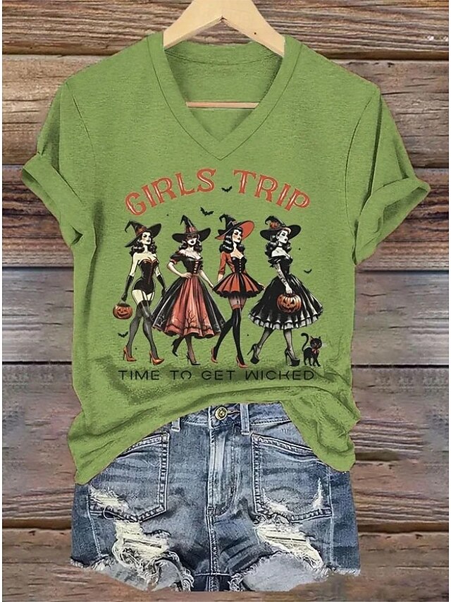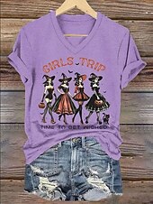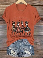 More information about Halloween Women's T shirt Witch Graphic Skull Vintage Stylish Classic Short Sleeve V Neck Regular Tops Daily Print Black White Purple Orange Green Summer Spring