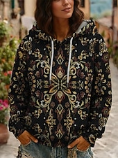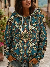 More information about Women's Pullover Hoodies Floral Vintage Streetwear Long Sleeve Hooded Regular Tops Dailywear Casual Drawstring Print Navy Blue Green Spring Fall