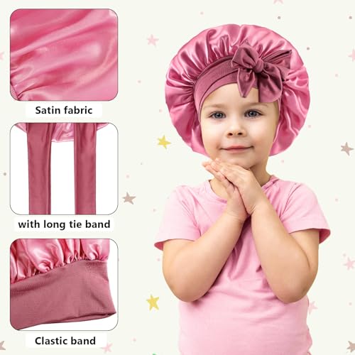 • High Quality Soft Satin Material: Our silk baby bonnet is made of satin material, smooth, glossy, soft, comfortable, washable & no fade. Satin bonnet for sleeping can feel soft and comfortable kid's head, not only protect the hair well, prevent frizz and tangles, and reduce breakage and fall.