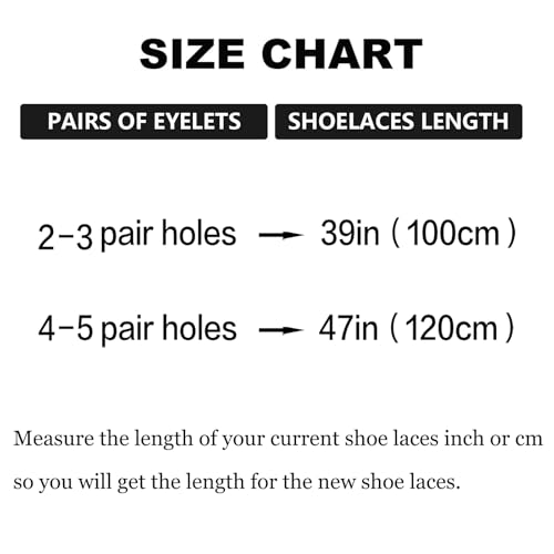• Multiple colors & lengths available: Choose from 8 vibrant colors (white, beige, pink, light gray, blue, purple, orange, yellow) and 2 lengths (39inch for 5-eyelet shoes, 47inch for 6-eyelet shoes) to perfectly match your style and fit
