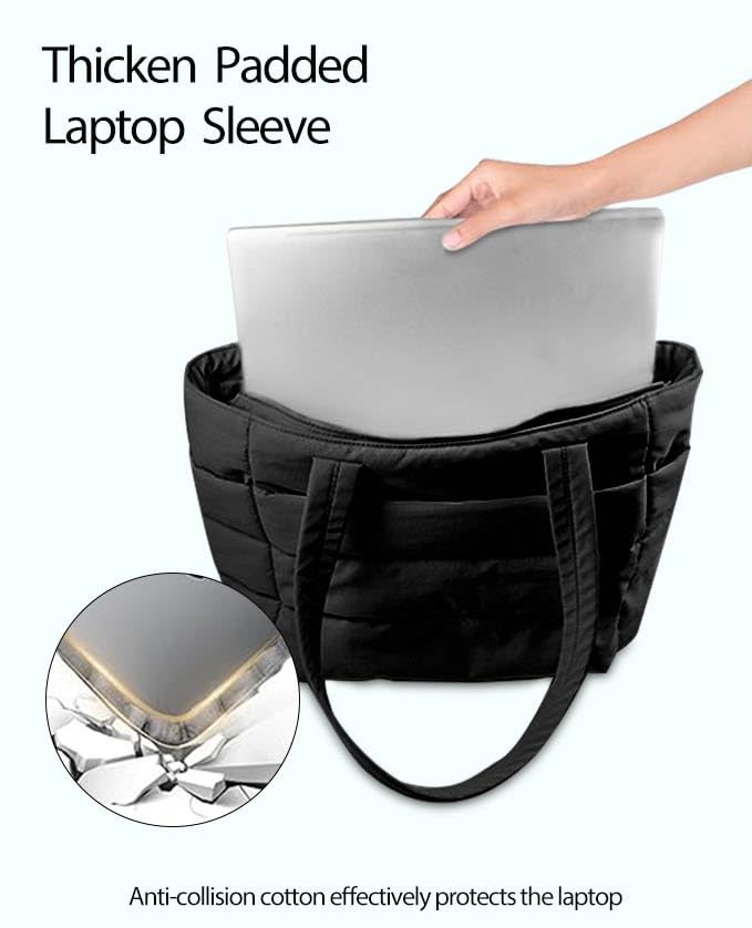 • Pratical work bag: Features multi-pockets women quilted tote, internal thickened compartment can easily hold A4 folder, clothes and 15.6'' laptop from damage. 2 side widen pockets for water bottle, umbrella, and 1 front pocket allow you quick access the items you need.
