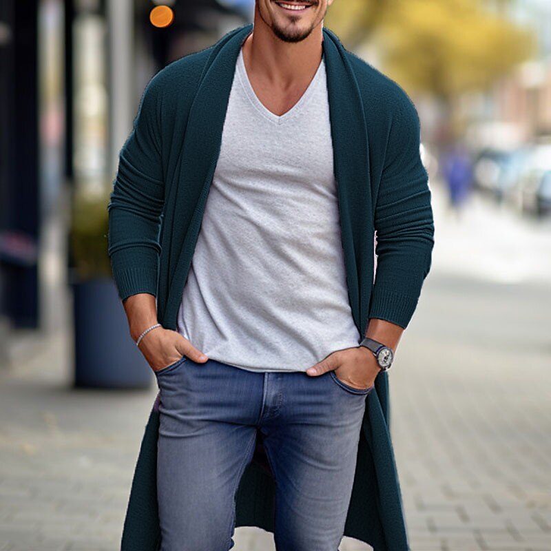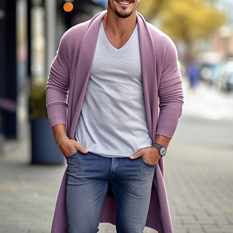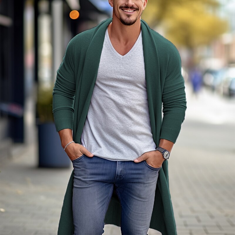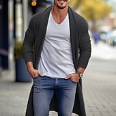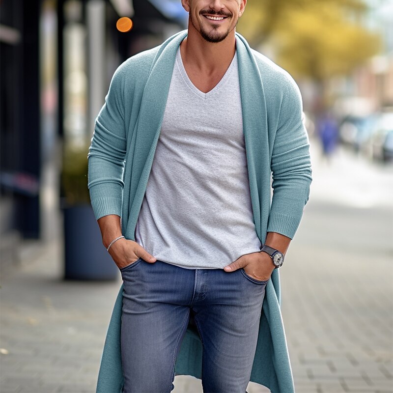 More information about Men's Cardigan Sweater Fall Sweater Ribbed Knit Tunic Knitted Plain Shawl Collar Warm Ups Modern Contemporary Daily Wear Going out Clothing Apparel Fall & Winter Blue Sky Blue M L XL