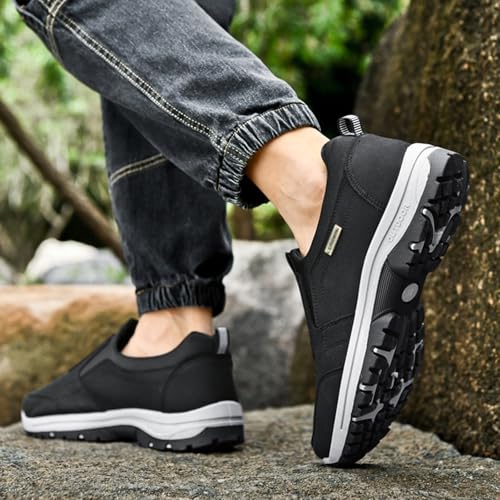 Gotosleeps Orthopedic Walking Shoes, Gotosleeps Shoes, Men's Comfortable Breathable Waterproof Hiking Shoes Slip-On Walking Shoes(Black,US 8.5) 3