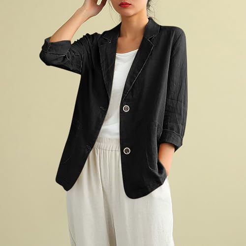 More information about Womens Linen Suit Shirts Jackets Solid Color Long Sleeves Button Notched Collar Business Casual Blazer Blouse Tops