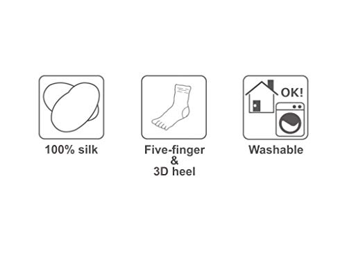 Fabric type: 100% SilkCare instructions: Hand Wash OnlyOrigin: ImportedPattern: SolidMade from 100% silk for a luxurious feel and exceptional craftsmanship.Moisture-wicking properties to keep feet dry and plush, reducing odor and preventing sweat buildup for year-round comfort.Five Toes Design keeps each toe separated and spread, which can help reduce friction from your toes rubbing against each other, giving you a cozy and comfortable wearing experience.Sleek & Soft texture for a gentle touch on the skin, ideal for sensitive skin types.Enhanced elasticity gives you a flexible fit that adapts to your movements.Perfect for foot care, sleeping, and relaxing – soft, breathable silk for all-day comfort. Perfect for everyday use. first-class materials and excellent craftsmanship ensure long-lasting durability.