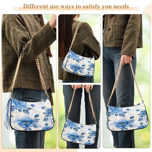 Shoulder Bags for Women Blue Roses Hobo Tote Handbag Small Clutch Purse with Zipper Closure 3