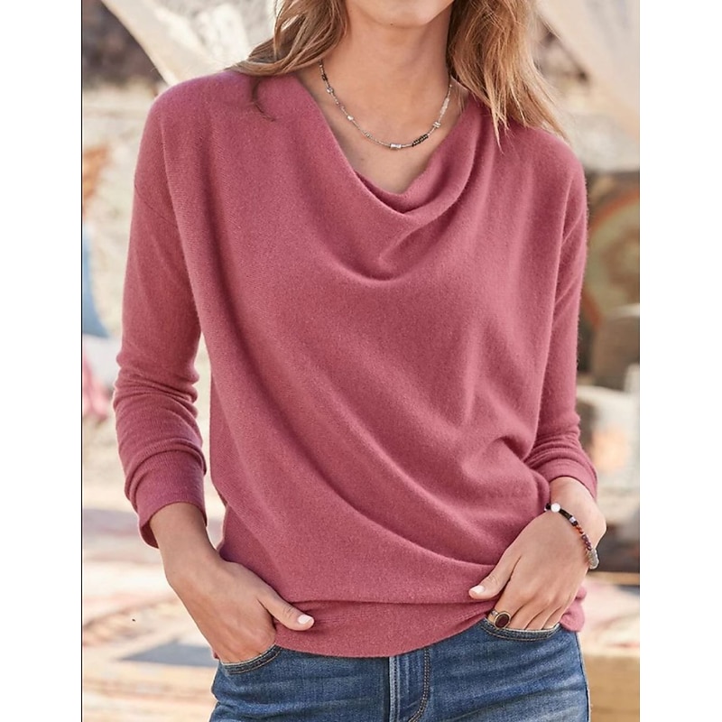 More information about Women's Shirt Blouse Plain Elegant Fashion Daily Long Sleeve V Neck Regular Tops Valentine's Day Casual Pink Red Orange Green Khaki Fall & Winter