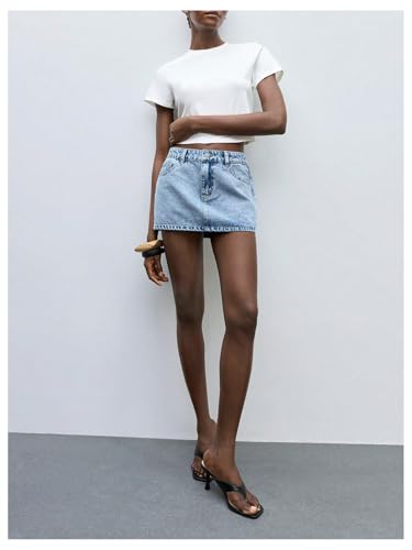 Floerns Women's Y2k Bow Embroidery Denim Skirt Low Rise Streetwear Mini Jean Skirt 4