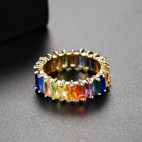 • Exquisite Design: Elevate your style with our 14K Gold rainbow rectangular Moissanite women's ring. Featuring a vibrant array of rainbow-colored Moissanite stones, this eternal ring boasts timeless elegance and sophistication, available in US sizes 6-9.