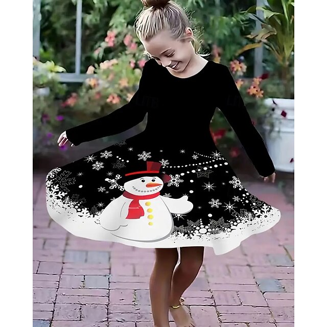 More information about Girls' 3D Snowman Snowflake Dress Long Sleeve Summer Spring Vacation Daily Holiday Princess Beautiful Sweet Kids 4-12 Years Casual Dress A Line Dress Knee-length Regular Fit