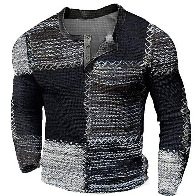 More information about Men's Graphic Color Block Henley Shirt Waffle T Shirt Long Sleeve 3D Print Fashion Designer Casual Sports Outdoor Holiday Festival Spring & Fall Blue Brown Green Gray Henley Henley T-Shirt