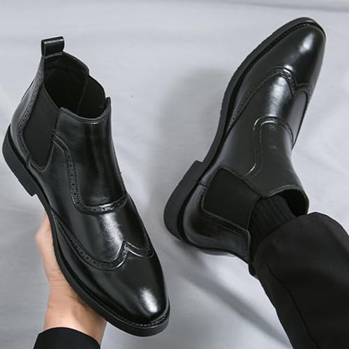 Men'S Leather Chunky Heel Vintage Chelsea Boots iconic Pointed Toe Elastic Pull On Non-Slip Formal Oxford Boots For Business, Evening Parties, Weddings