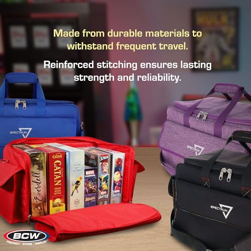 Perfect for Game Nights & Conventions: This board game storage bag holds 6-8 games like Catan, Wingspan, Everdell, and Adultopoly, making it ideal for any game night or convention. The BCW Spectrum Bag keeps your games secure, organized, and always ready for action.Built to Last with Ample Storage: Made from durable materials, this board game bag features robust zippers and expandable pockets for game accessories like rulebooks, dice, and even more board games like Azul, Risk, and Villainous expansions.Easy Access with Zippered Top & Side: The bag’s zippered top not only secures your games during transport but also opens one side completely, allowing for easy access to your board game accessories without having to unpack everything, saving you time and hassle.Comfortable and Convenient to Carry: Equipped with a removable, adjustable shoulder strap, the Spectrum Game Bags offers comfort during travel. Whether you’re walking to a local game night or navigating a crowded convention, this bag makes it easy to bring your favorite games along.Stay Organized & Ready: With room for a variety of games—from Dominion and Jumanji to National Parks—and expandable pockets for essentials, this board game bag provides optimal storage and organization. Perfect for for any board game enthusiast who wants to keep their collection secure and accessible. Perfect for everyday use. High quality materials and excellent craftsmanship ensure long-lasting durability.