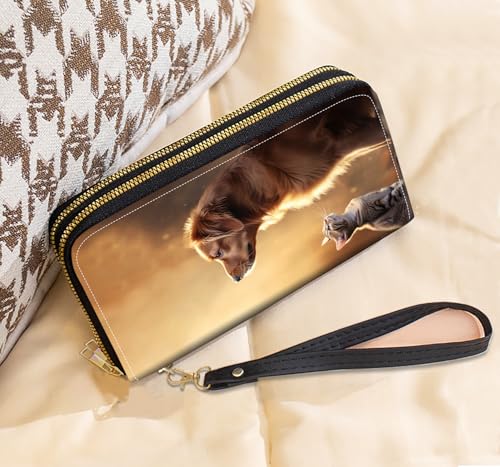 Cat and Dog Print Wallet for Women with Credit Card Holder Coin Money Clip PU Leather Double Zip Around Clutch Wallet 7