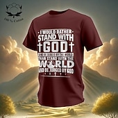 Men's Graphic Tee: Christian Faith Statement 'Stand With God, Be Judged By God' 100% Cotton Short Sleeve 7