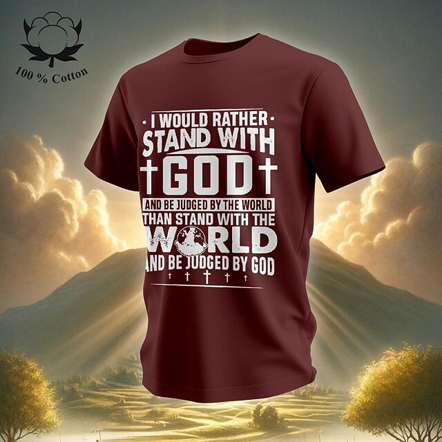 HOT ! Men's Graphic Tee: Christian Faith Statement 'Stand With God, Be Judged By God' 100% Cotton Short Sleeve