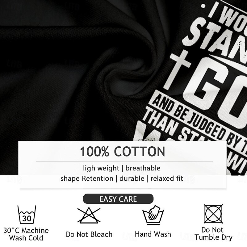 Men's Graphic Tee: Christian Faith Statement 'Stand With God, Be Judged By God' 100% Cotton Short Sleeve 5