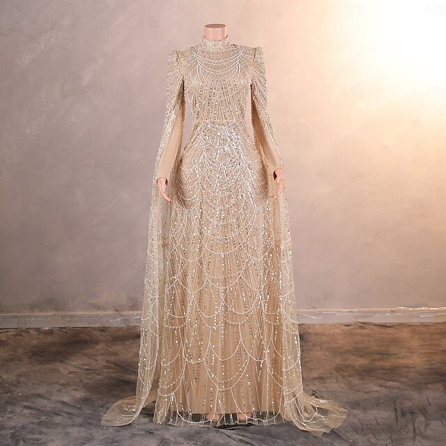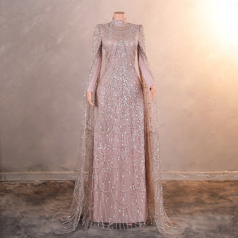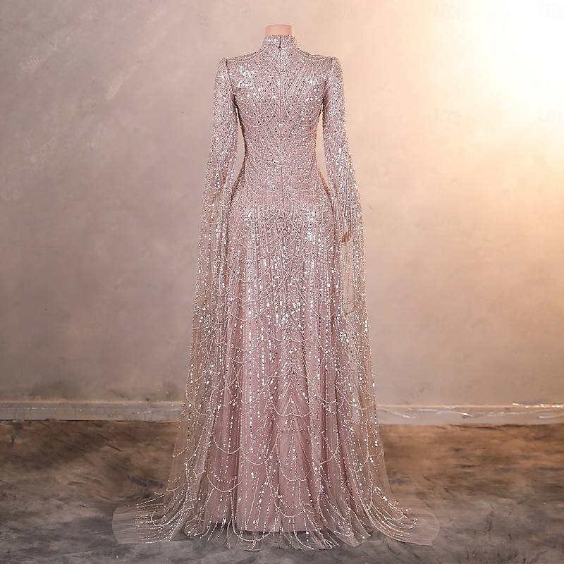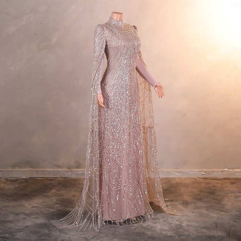 More information about Mermaid / Trumpet Evening Gown Elegant Dress Formal Prom Sweep / Brush Train Long Sleeve Stand Collar Lace with Pearls Sequin