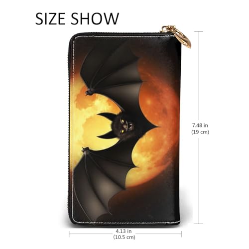HOT ! Halloween Bat Women Wallets Leather Zip Around Clutch Purses Waterproof Credit Card Holder With Phone Holder Ladies Travel Coin Purse