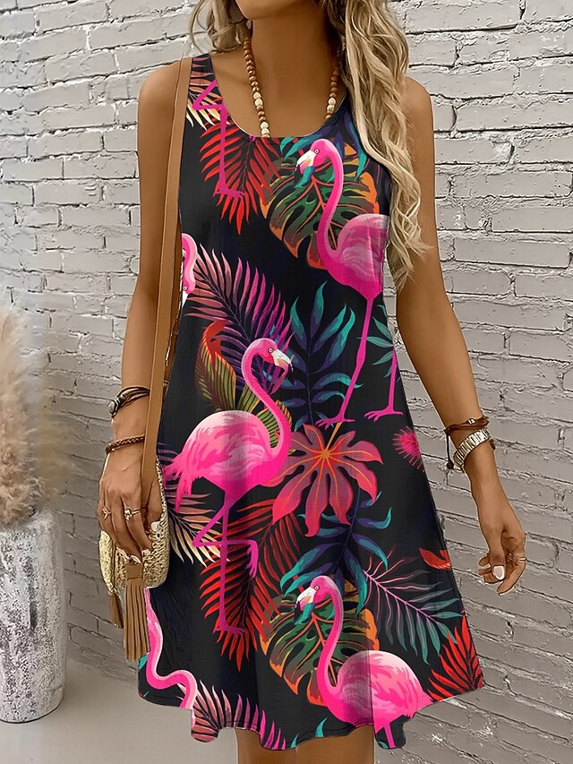 HOT ! Women's Mini Dress Sundress A Line Dress Off The Shoulder Dress Vacation Casual Holiday Beach Regular Fit Floral Graphic Bird Sleeveless Crew Neck Magenta Pink Purple Orange Summer