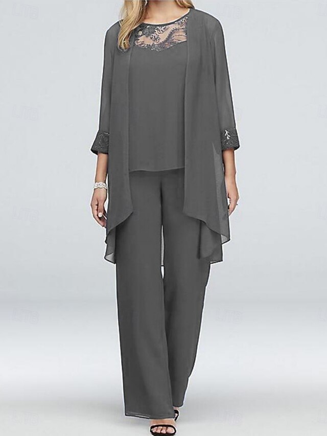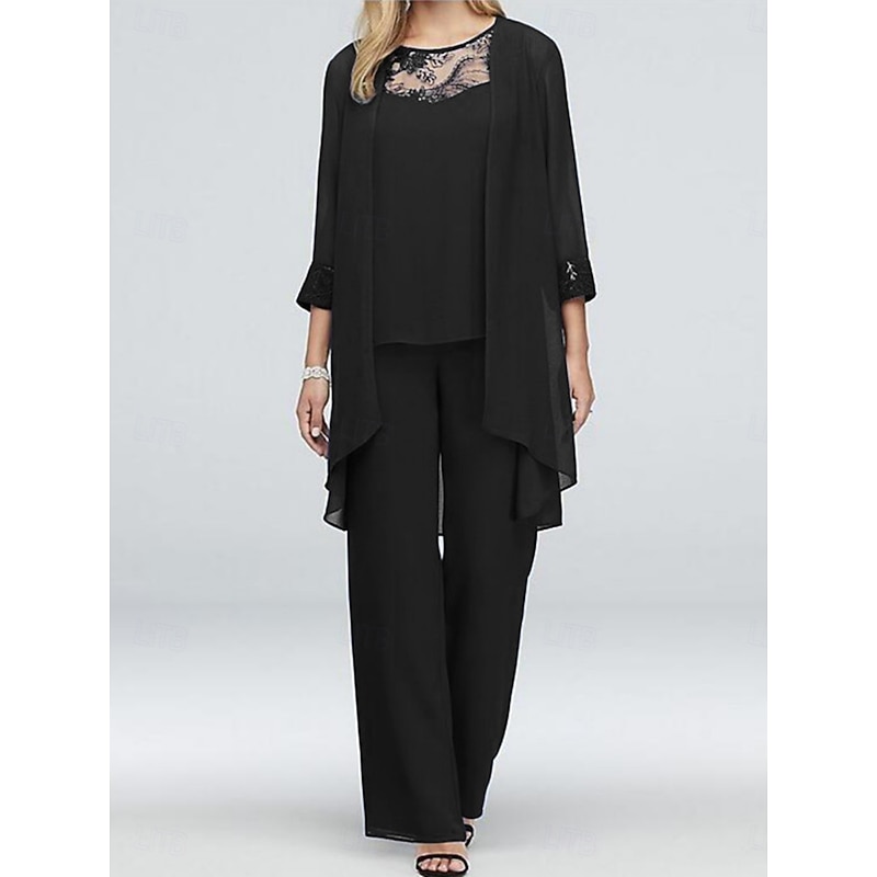 More information about Women's Fashion Streetwear Daily Shirt Lace Shirt Wide Leg Pants 3/4 Length Sleeve Crew Neck Plain Lace Patchwork Casual Daily Black Blue Gray Summer Regular Fit