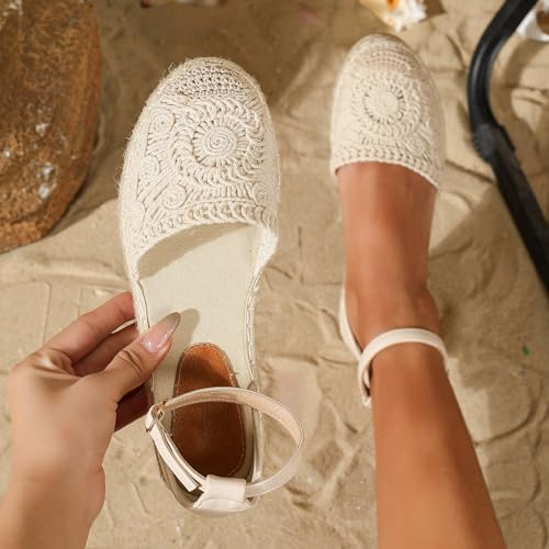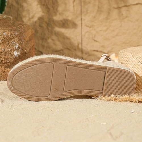 Lossarye Women's Platform Closed Toe Espadrille Sandals Adjustable Ankle Strap Comfortable Round Toe Breathable Flat Sandals for Summer Vocation Beach Dressy Shoes 6