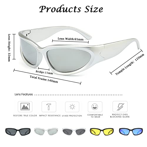 Wrap Around Sunglasses - Y2K Fashion Futuristic Sun Glasses for Women Men Oval Sports Shades 4
