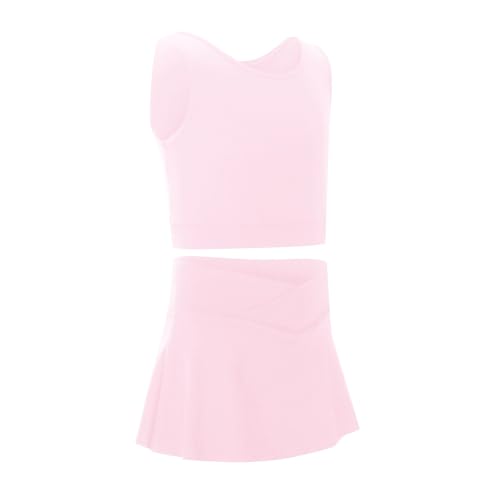 Kids Tennis Dress,Toddler Girl Athletic Dress Cheer Skirts Graduation Outfits 2 Piece Workout Outfits Crop Tank Tops And Skort Skirt Set Light Pink Small 6