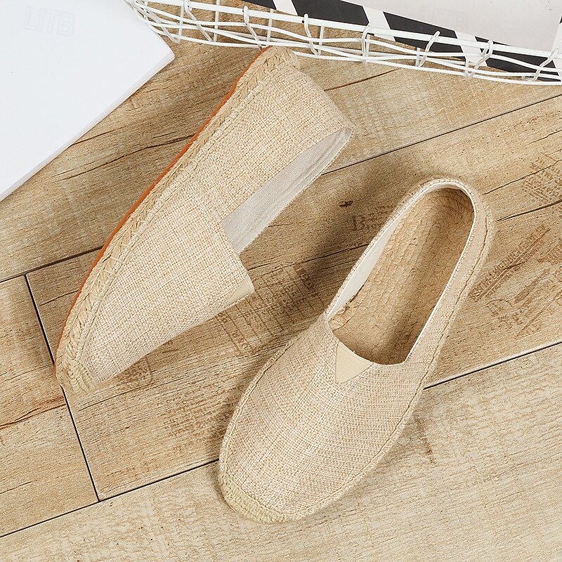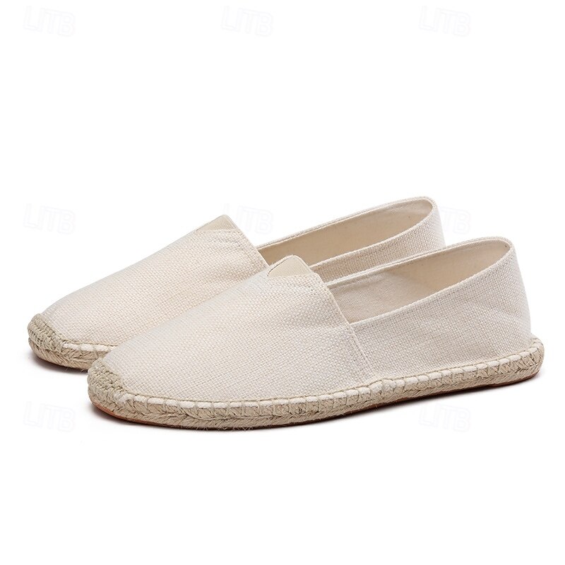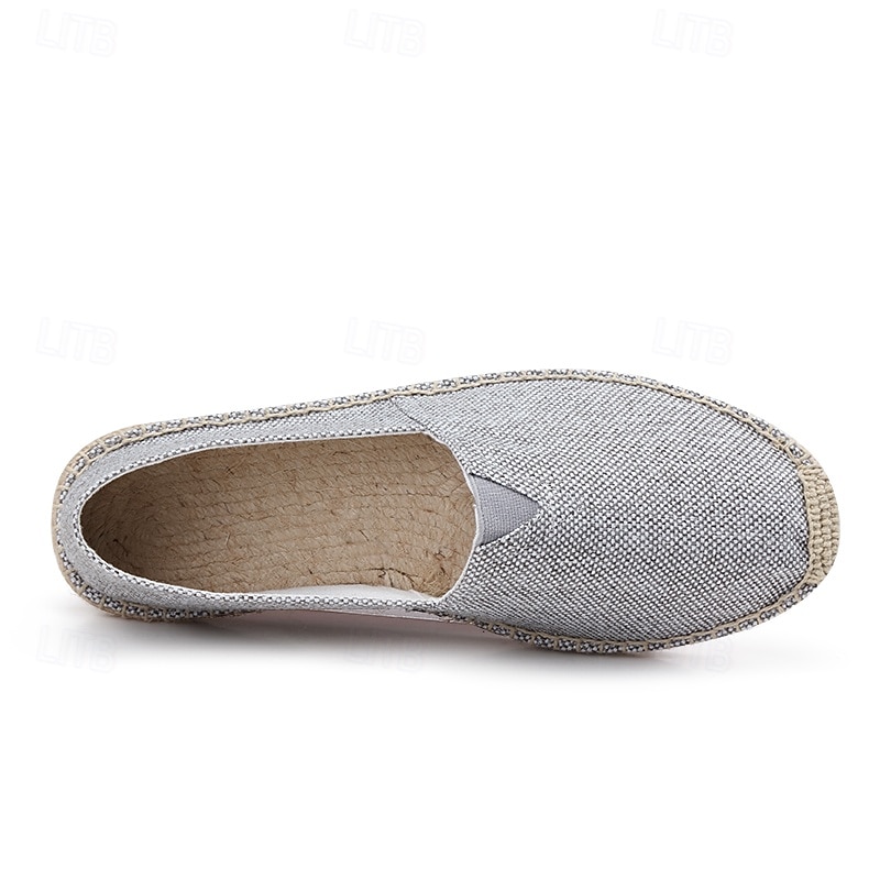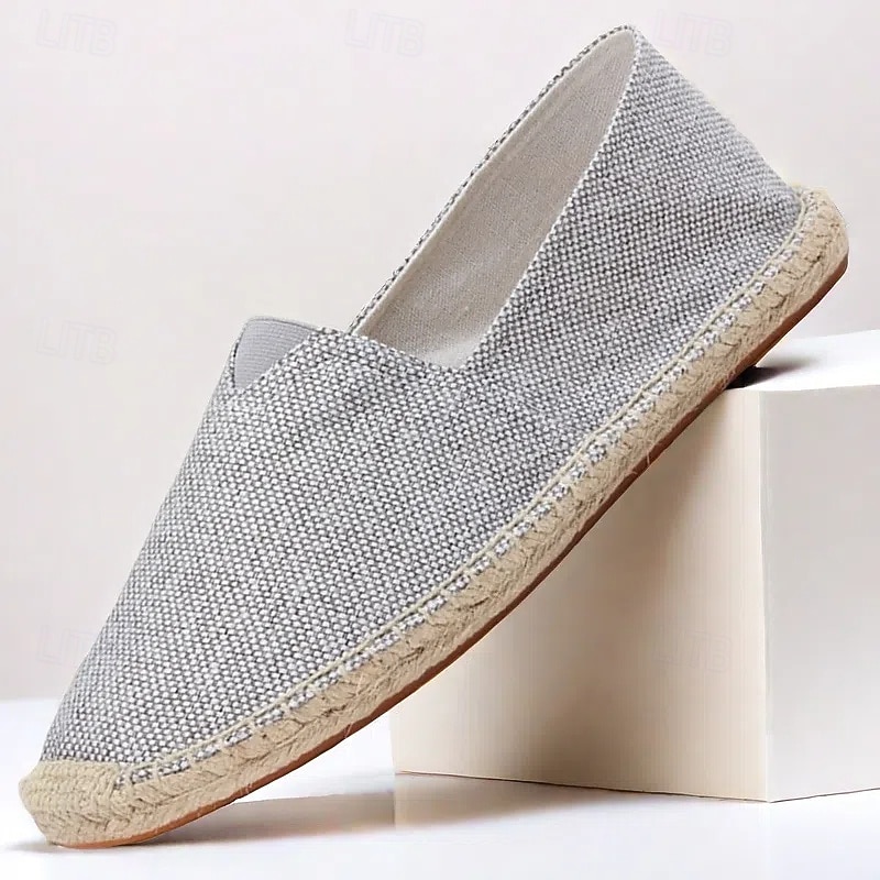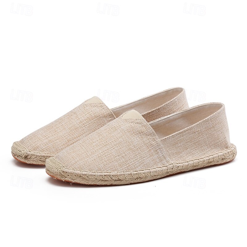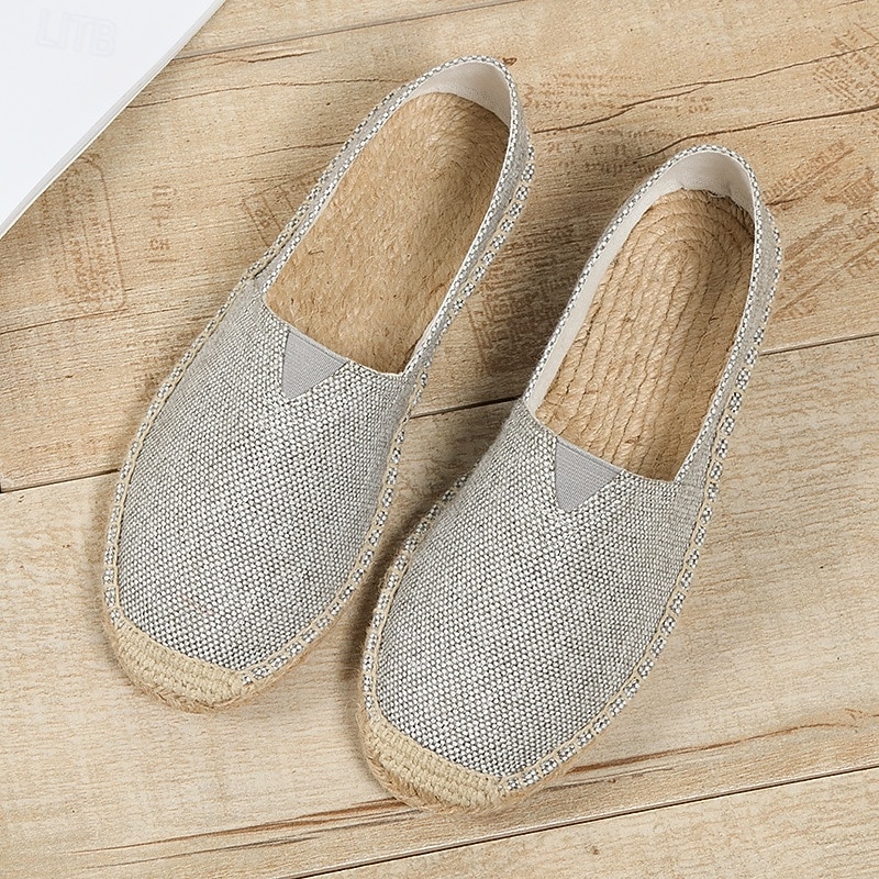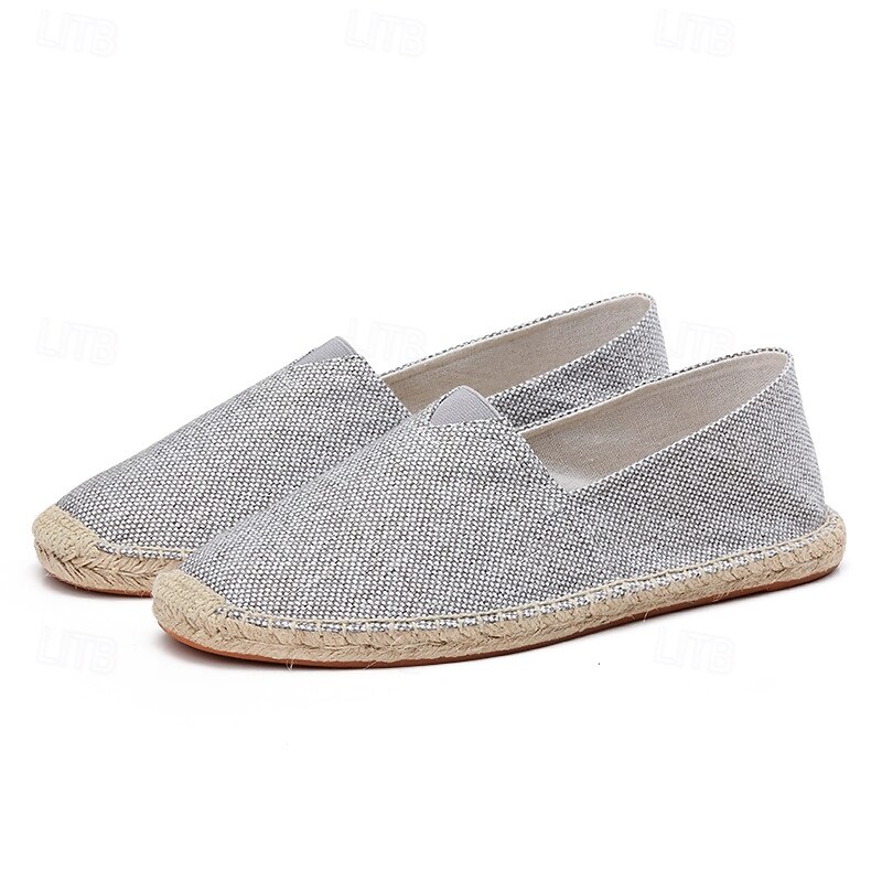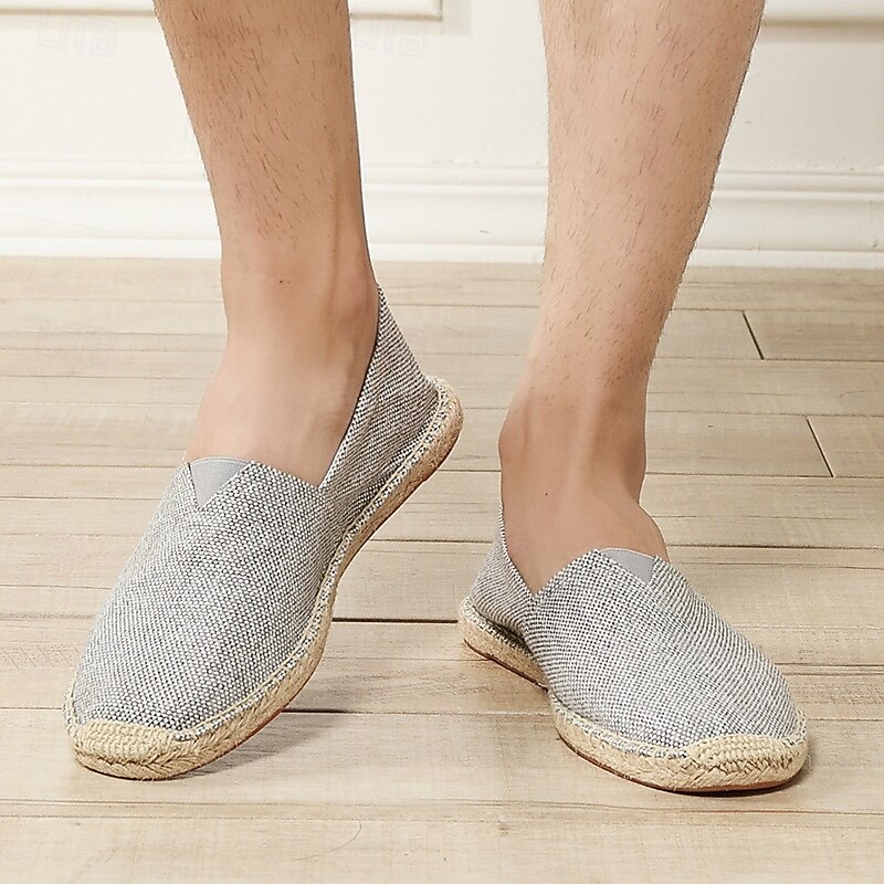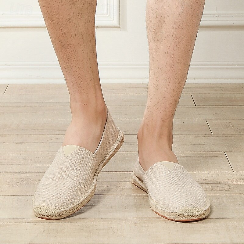Highlights [Fabric] : These men's espadrille slip-on shoes are constructed from high-quality, breathable canvas fabric. This material ensures comfort and suitability for warm weather, making them an ideal choice for summer days. [Fit] : Designed with a classic round toe and a convenient slip-on style, these shoes provide both ease of wear and a comfortable fit. The soft insole enhances comfort for extended wear. [Design Highlights] : The shoes boast a rustic yet elegant design with a distinctive braided jute rope sole, a signature feature of traditional espadrilles. The inclusion of a durable rubber outsole offers reliable grip, making these shoes practical for both indoor and outdoor activities. [Occasions] : Perfect for relaxed settings such as weekend outings, casual gatherings, or beach trips, these espadrilles combine comfort with style. The neutral color options allow for easy pairing with various casual ensembles. [Size Range] : Available in sizes US7 to US10.5, these shoes cater to a variety of foot sizes and preferences, ensuring a suitable fit for most men seeking stylish and comfortable summer footwear.