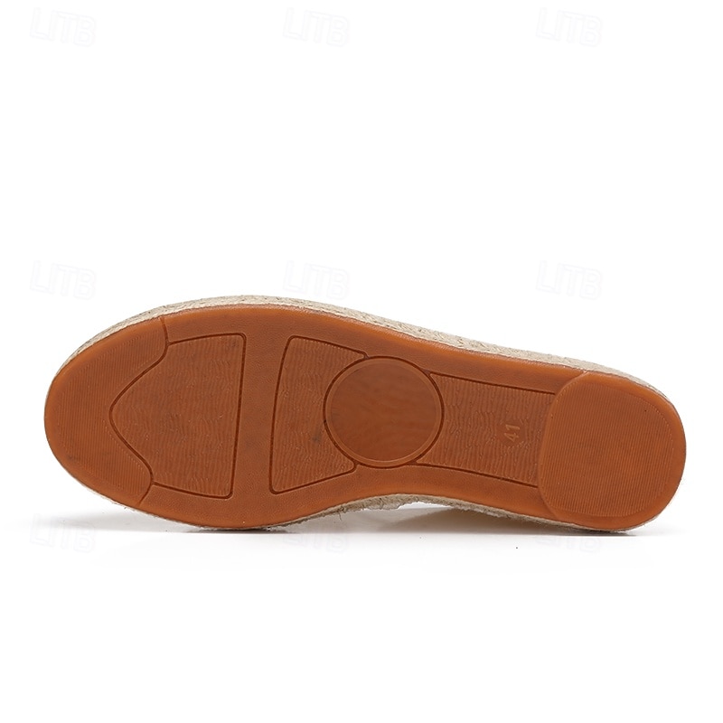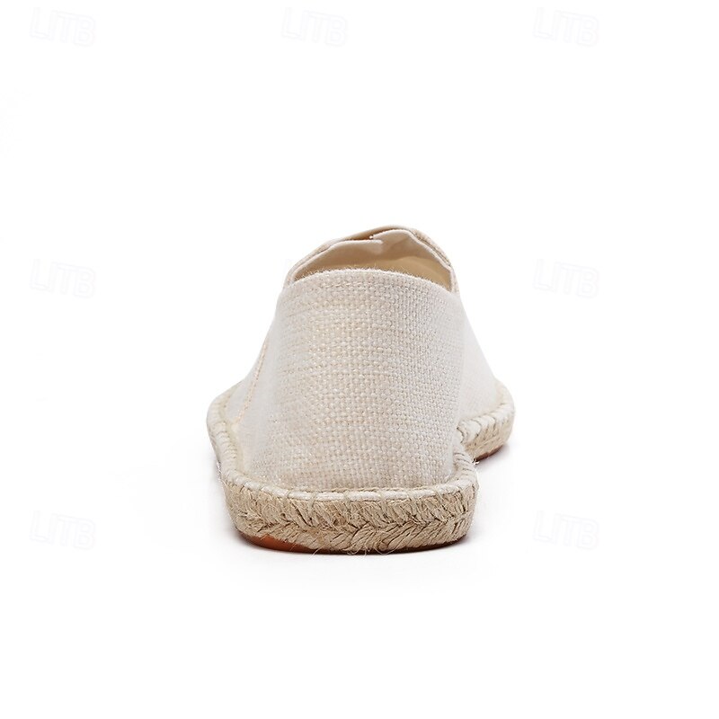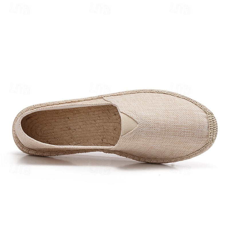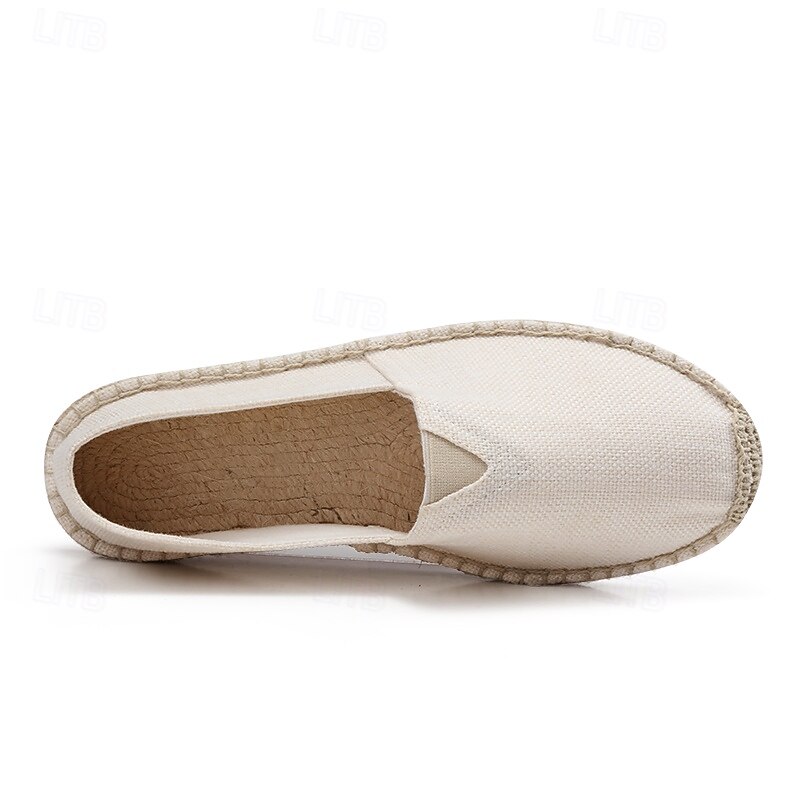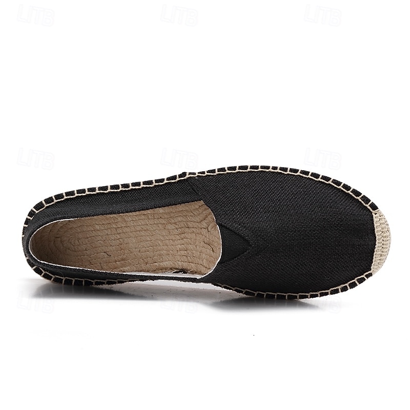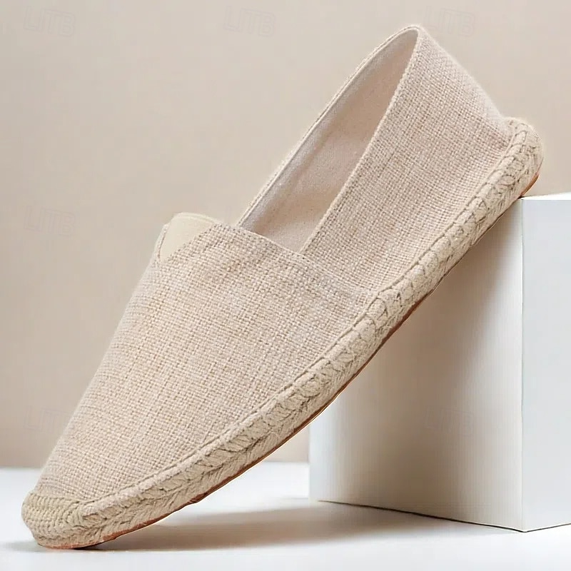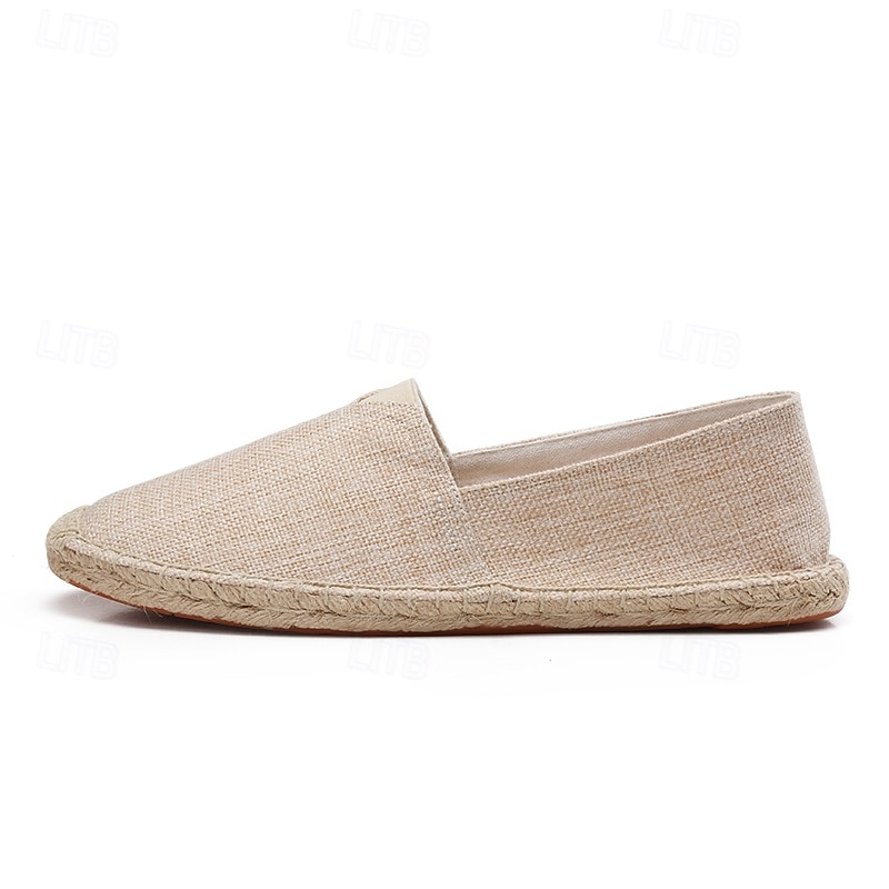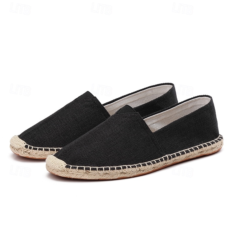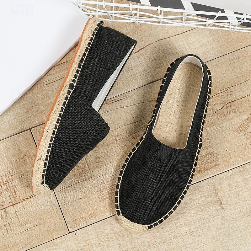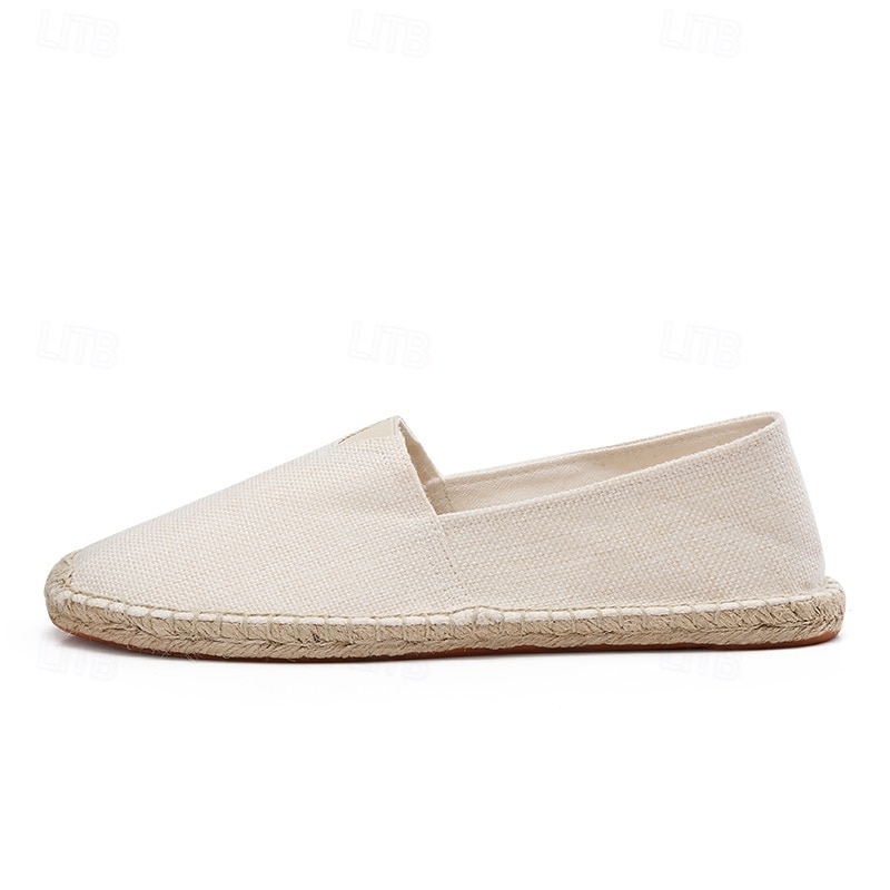 Highlights [Fabric] : These men's espadrille slip-on shoes are constructed from high-quality, breathable canvas fabric. This material ensures comfort and suitability for warm weather, making them an ideal choice for summer days. [Fit] : Designed with a classic round toe and a convenient slip-on style, these shoes provide both ease of wear and a comfortable fit. The soft insole enhances comfort for extended wear. [Design Highlights] : The shoes boast a rustic yet elegant design with a distinctive braided jute rope sole, a signature feature of traditional espadrilles. The inclusion of a durable rubber outsole offers reliable grip, making these shoes practical for both indoor and outdoor activities. [Occasions] : Perfect for relaxed settings such as weekend outings, casual gatherings, or beach trips, these espadrilles combine comfort with style. The neutral color options allow for easy pairing with various casual ensembles. [Size Range] : Available in sizes US7 to US10.5, these shoes cater to a variety of foot sizes and preferences, ensuring a suitable fit for most men seeking stylish and comfortable summer footwear.