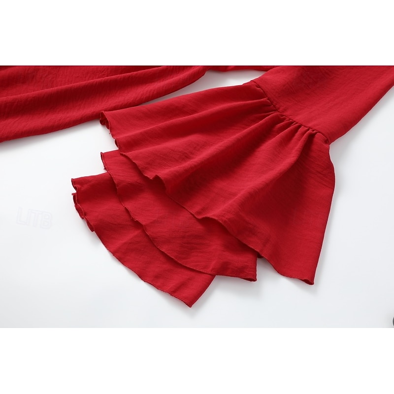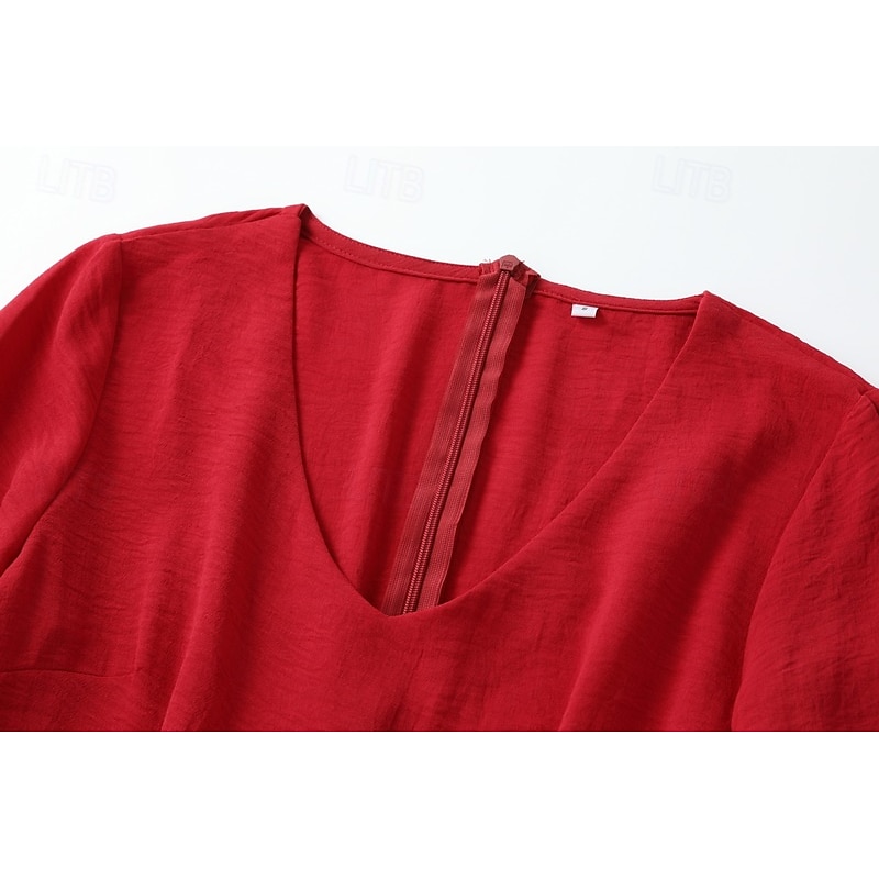 More information about Women's Mini Dress Boho Dress Western Dress Fashion Classic Modern Outdoor Holiday Going out Regular Fit Plain Long Sleeve V Neck Red Summer