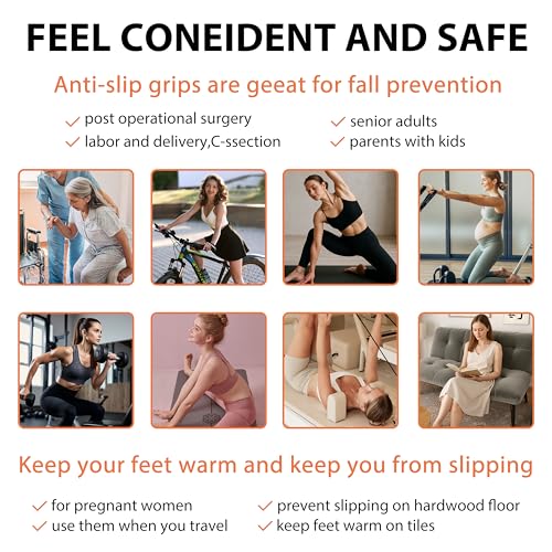 • Slipper Socks with Grips: These grippy socks woman are slip resistant while maintaining foot comfort (5% spandex added make it very stretchy for more feet sizes and reinforced high elastic cuff won't slide off on your feet ) to ensure your safety when walking on the wooden floors or tile floors. Also used as hospitals socks with grips for elderly during rehab, after knee replacmenet suragery or during hospital visists.