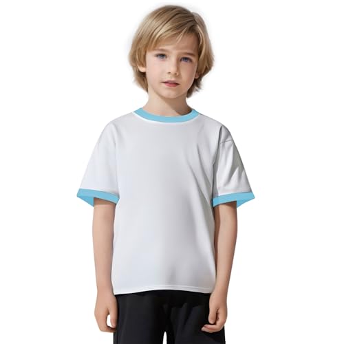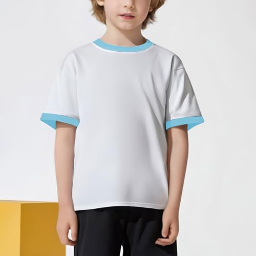 Boys Girls Short Sleeve T Shirts Kids Summer Color Block Crewneck Tops Fashion Cotton Tees 2-13Years 7