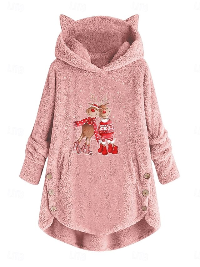 More information about Women's Pullover Hoodie Sweatshirt Graphic Reindeer Casual Long Sleeve Hooded Crop Tops Street Dailywear Casual Pocket Print Pink Wine Gray Fall Winter