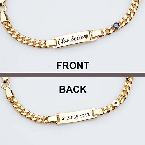 Custom Baby Birthstone Bracelets with Name for Infant Girls, Personalized 18K Gold Plated Bracelet Engraved Name Baby Birthday Gifts for Boys, Kids Jewelry for Girls 4