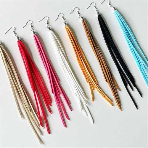 HOT ! Leather Tassel Earrings Bohemian Tassel Fringe Dangle Earrings Boho Handmade Leather Feather Long Tassel Earrings Western Jewelry for Women