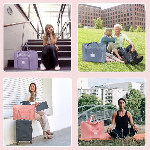 Personalized Folding Duffle Bag, Custom High Capacity Luggage Bag w/Embroidered Name, Customized Cloth Bags with Handles for Women/Men Sports Dance Gym Travel Weekender Overnight Bridesmaid 4