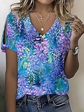 More information about Women's T Shirt Floral Graphic Vintage Stylish Modern Short Sleeve V Neck Regular Tops Daily Going out Weekend Print Pink Navy Blue Blue Khaki Summer Spring