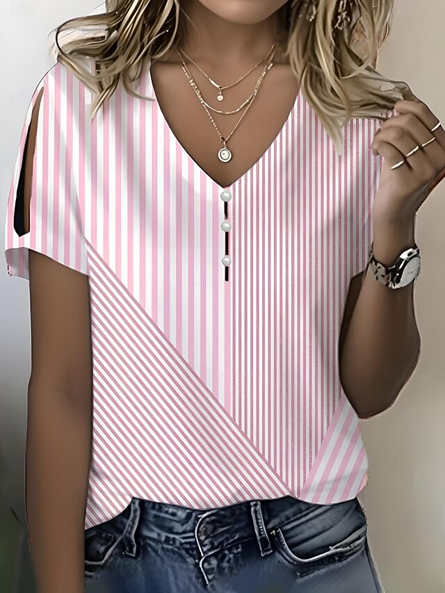HOT ! Women's T Shirt Floral Graphic Vintage Stylish Modern Short Sleeve V Neck Regular Tops Daily Going out Weekend Print Pink Navy Blue Blue Khaki Summer Spring