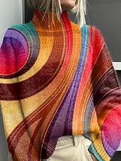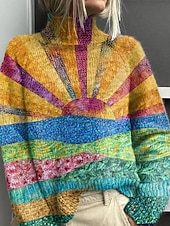 More information about Women's Pullover Vacation Daily Geometric Color Block Ribbed Turtleneck Print Long Sleeve Regular Tops Knit Outdoor Daily Holiday Yellow Purple Fall Winter