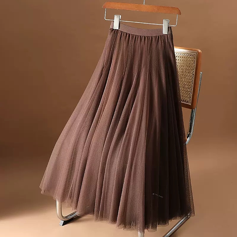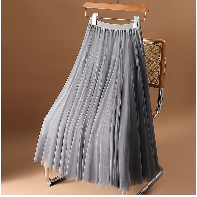 Highlights [Fabric]: Crafted from high-quality polyester, this elegant skirt features a lightweight and sheer material that drapes beautifully. The fabric offers a delicate and airy feel, perfect for an effortless and sophisticated look. [Silhouette]: Designed with a flowy A-line silhouette, this midi skirt provides a graceful swing effect. The skirt's regular fit and elastic waistband ensure a comfortable and adaptable fit for various body types. [Design Highlights]: This skirt showcases a stunning layered and ruched design, adding a touch of texture and dimension. The subtle, solid-colored palette enhances its versatility, allowing it to complement any wardrobe effortlessly. [Occasions]: Ideal for a range of occasions, this skirt is perfect for dates, daily wear, and both casual and more formal events. Its elegant style makes it a versatile choice for all seasons, from spring through winter. [Size Range]: Available in sizes S, M, L, and XL, catering to a variety of fits and preferences. Elegant and versatile, this skirt is a must-have piece for any wardrobe.