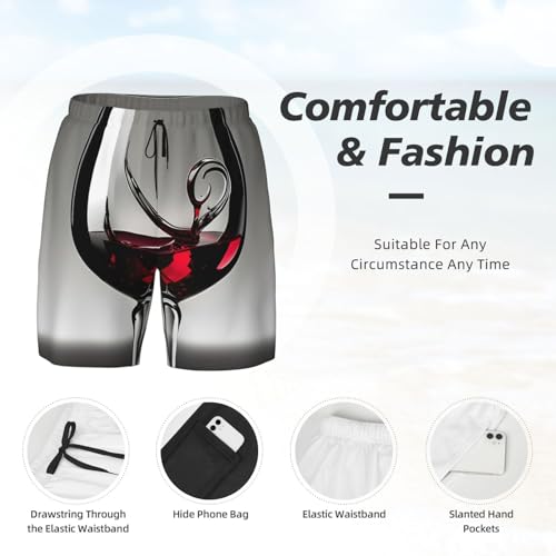 HOT ! Wine Glass Men's Soft Double Swim Shorts, Lounge Swiming Shorts Pants Breathable Summer