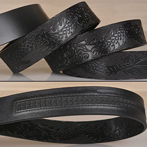 Men's Ratchet Belt With Gold 3D Dragon Buckle - Engraved Pattern, Adjustable Click Design