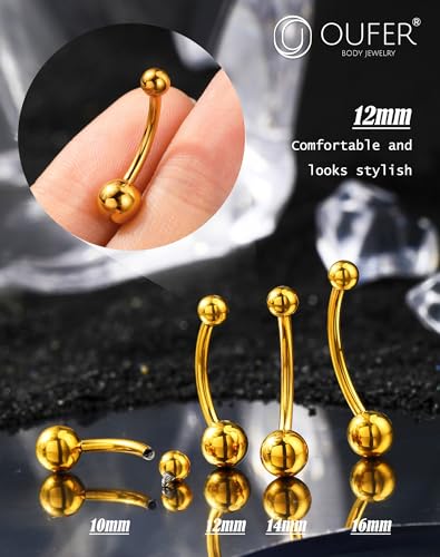 More information about OUFER Titanium Belly Button Rings, Gold Belly Rings, Internally Threaded Navel Piercing Jewelry, Long Belly Piercing Jewelry, Curved Barbell, Belly Rings For Women Men