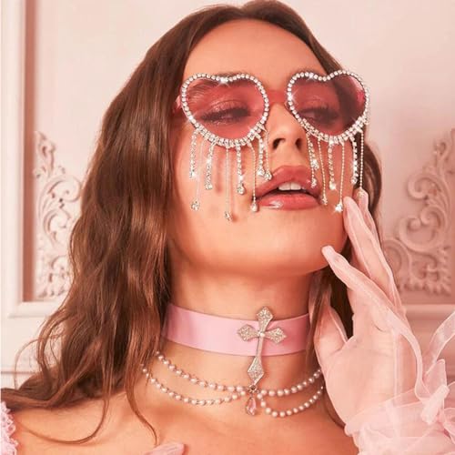 HOT ! Bachelorette Party Tassel Heart Sunglasses, Pink Heart Tassel Glasses for Women Gril Kids Funny Bachelorette Wedding Disco Party Gift Accessories Supplies