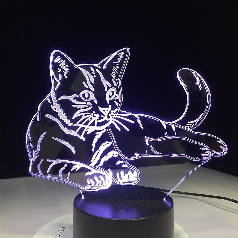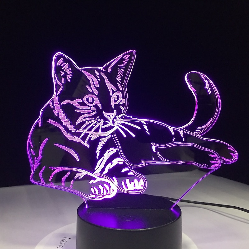 3D LED Night Light Pet Cat Illusion USB Beside Table Lamp 7 Colors Changing Touch Switch Decoration Night Lamp Birthday Present Lover Theme Toy 10