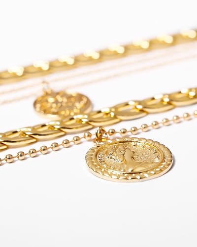 MJartoria Gold Layered Necklaces for Women Trendy Retro Coin Pendant Necklace Dainty Chunky Chain Necklaces for Jewelry Birthday Gifts 1