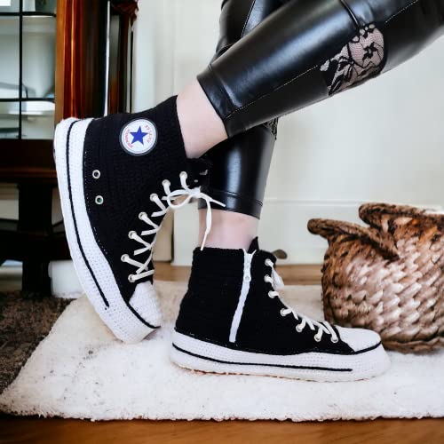 • Fashionable & Unique: Make a statement with our unisex rubber sole shoes, featuring a handmade crochet knitted design inspired by classic Canvas-like sneakers. Personalize with any color to make them truly one-of-a-kind for any occasion, from Christmas to Halloween.